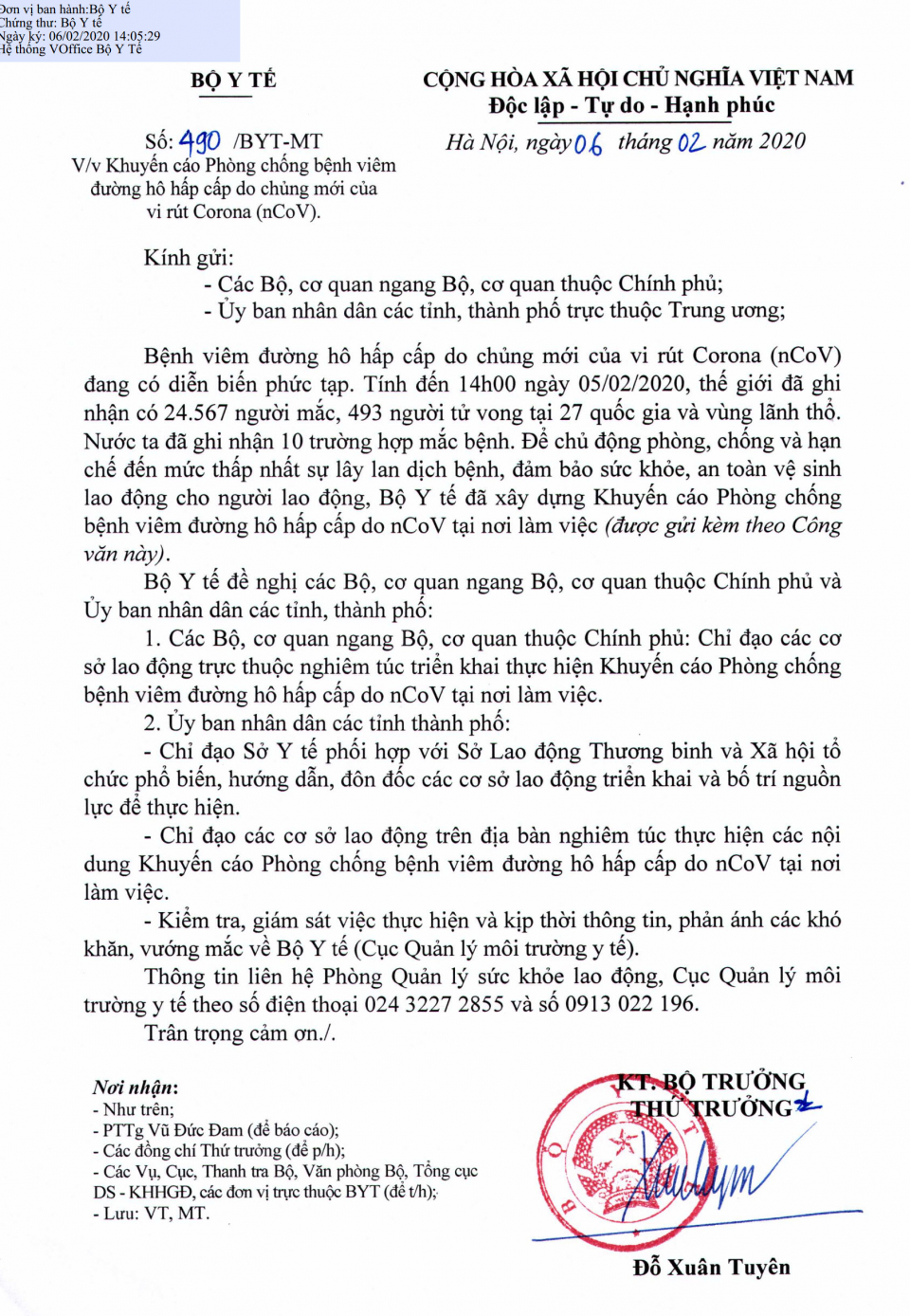 Công văn số 555/UBND-VX về việc khuyến cáo phòng, chống bệnh viêm đường hô hấp cấp do chủng mới của vi rút Corona (nCoV)