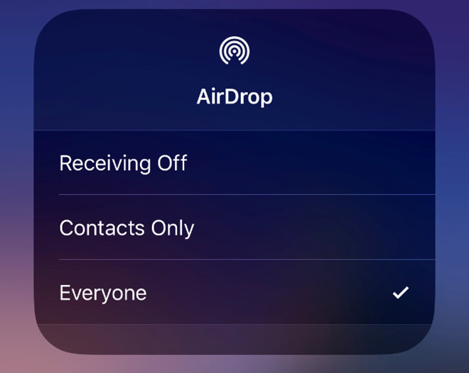 AirDrop có 3 chế độ hiển thị là Everyone (mọi người), Contacts Only (những thiết bị có trong danh bạ) và Receiving Off (tắt AirDrop). Bạn nên kiểm tra xem thiết bị có đang để chế độ hiển thị Contacts Only hay không và điều chỉnh lại cho phù hợp với cả hai thiết bị đang cần gửi nhận dữ liệu.