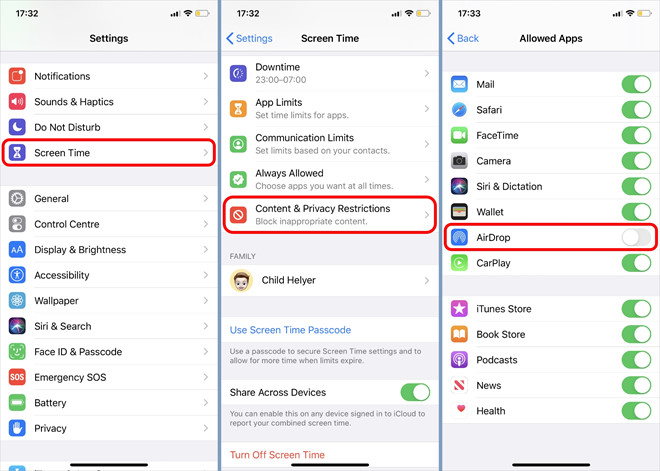 3. Tắt tính năng hạn chế AirDrop