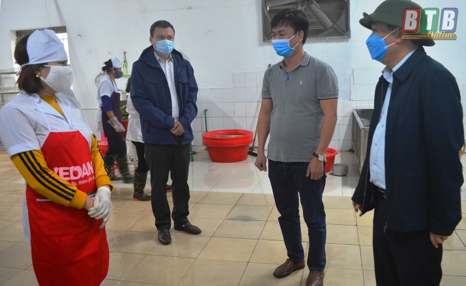 Đồng chí Nguyễn Quang Hưng, Tỉnh ủy viên, Phó Chủ tịch UBND tỉnh kiểm tra tại bếp ăn Công ty TNHH Poongshin Vina.