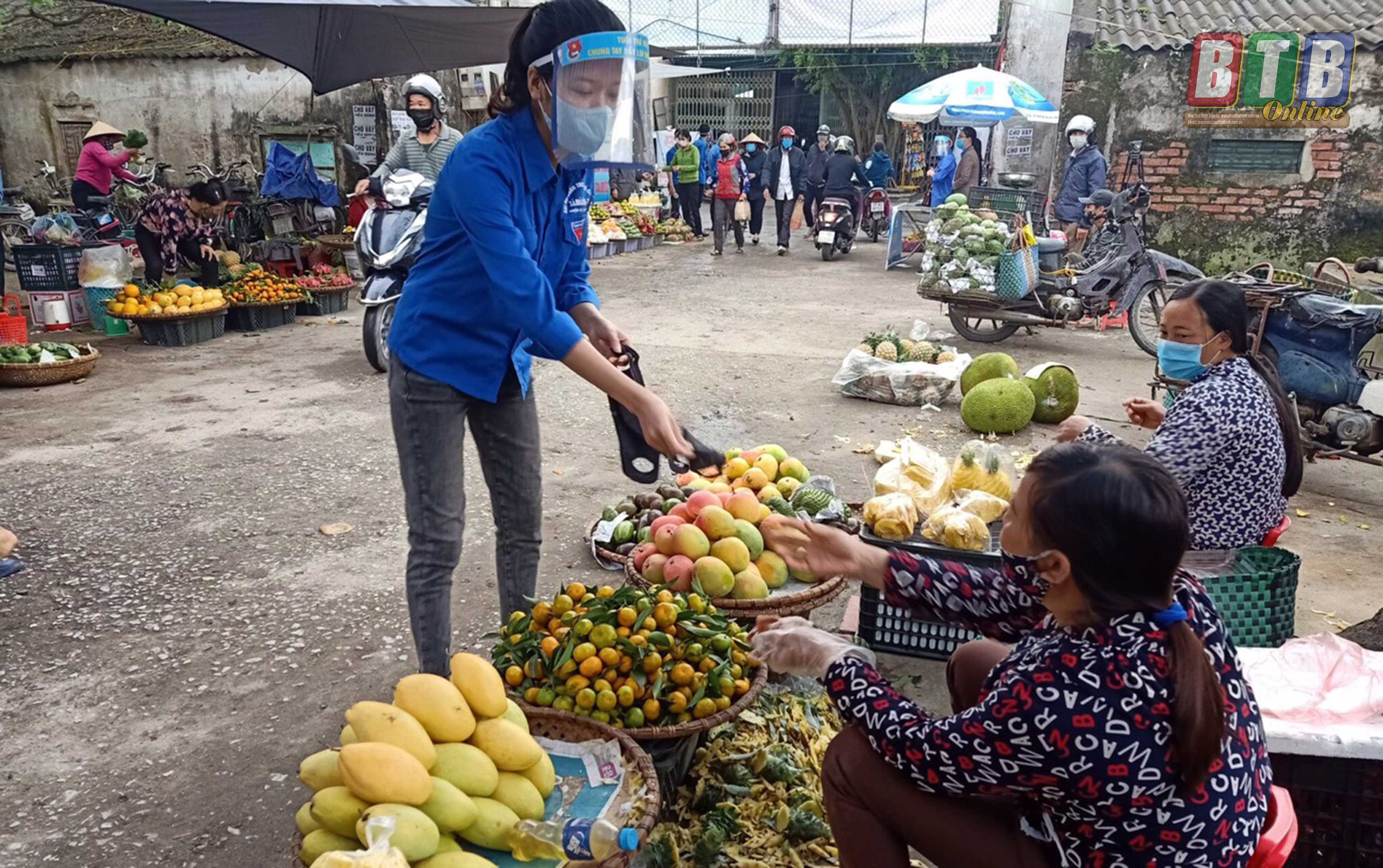 Trên 20 cán bộ, đoàn viên thanh niên tham gia phát khẩu trang miễn phí và hỗ trợ người họp chợ sát khuẩn tay phòng, chống dịch Covid-19 tại 4 cổng ra vào của chợ. Toàn bộ nguồn kinh phí mua khẩu trang và nước sát khuẩn do Đoàn TNCS Hồ Chí Minh huyện Vũ Thư huy động từ sự đóng góp, ủng hộ của nhiều tổ chức, cá nhân, cộng đồng trên địa bàn.