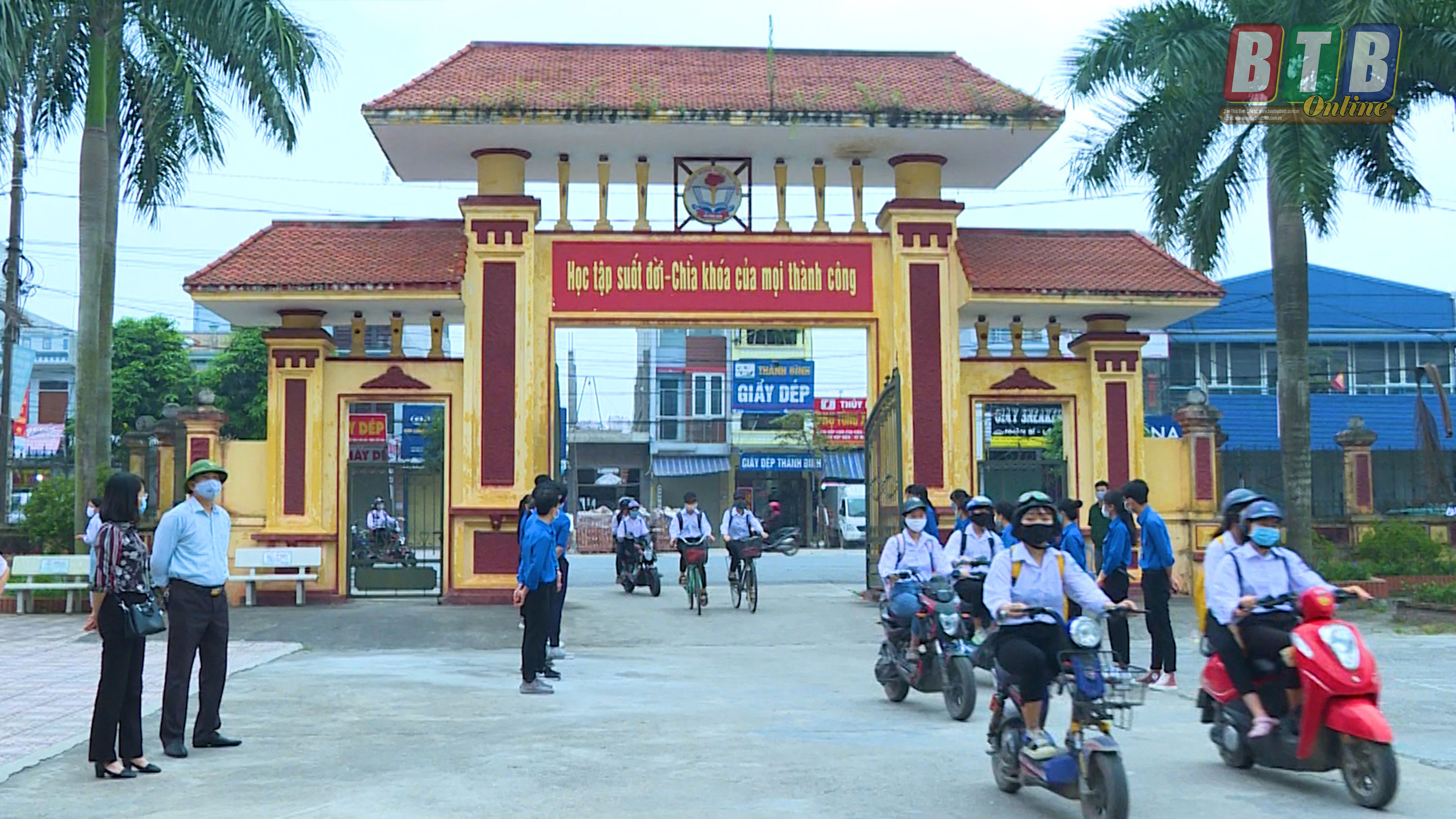 Học sinh Trường THPT Bắc Đông Quan đều đeo khẩu trang khi đến trường.