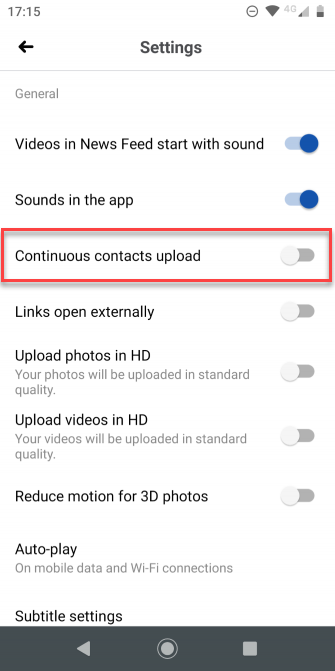 Kích hoạt tùy chọn để tải danh bạ lên Facebook