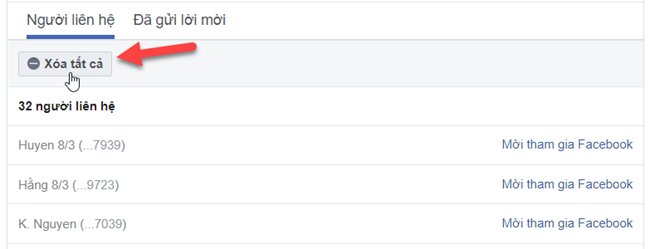 Xóa bỏ các liên hệ đã tải lên Facebook