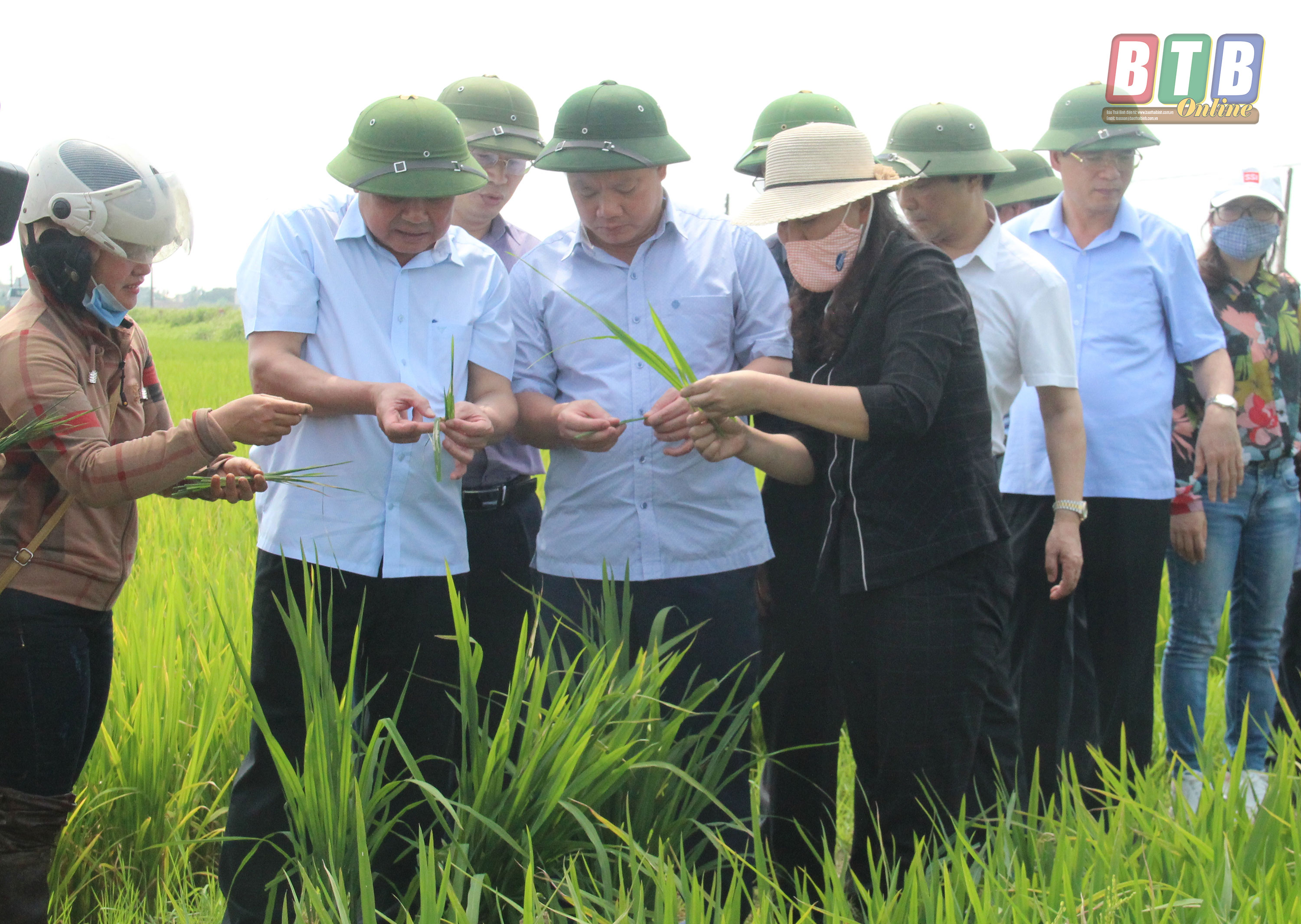 Đoàn công tác của Bộ Nông nghiệp và Phát triển nông thôn do Thứ trưởng Lê Quốc Doanh dẫn đầu kiểm tra tình hình sâu bệnh hại lúa xuân tại xã Thụy Thanh (Thái Thụy).