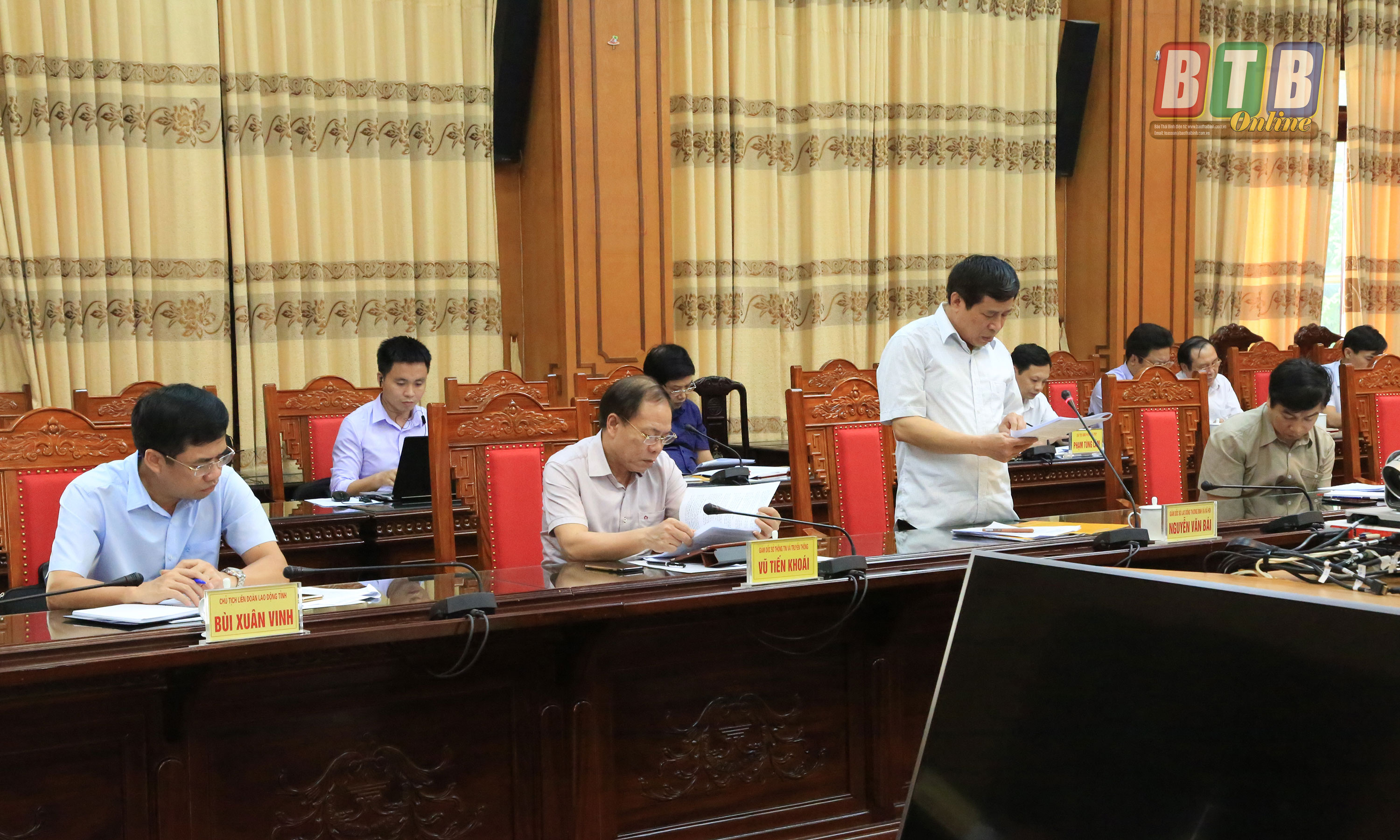 Lãnh đạo Sở Lao động, Thương binh và Xã hội báo cáo tại cuộc họp. Ảnh: Thành Tâm