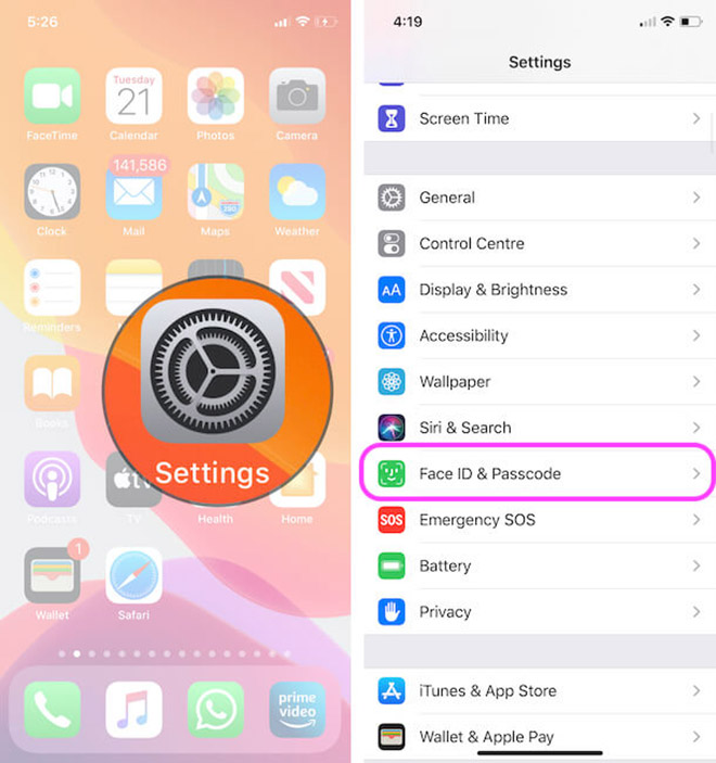 - Mở ứng dụng Settings trên iPhone, sau đó vào Face ID & Passcode.