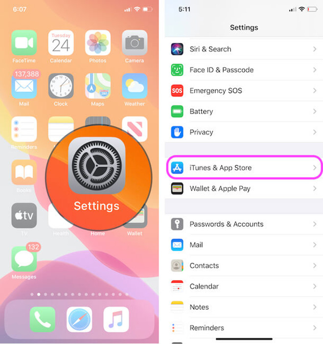 - Truy cập ứng dụng Settings trên iPhone, chọn iTunes & App Store.