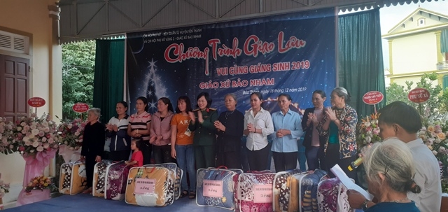Chi hội Phụ nữ Ban CHQS huyện Yên Thành tặng quà các gia đình giáo dân có hoàn cảnh khó khăn trên địa bàn.