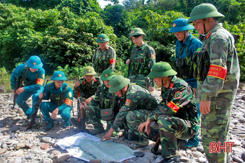Dân quân xã Sơn Kim 1 phối hợp với lực lượng bộ độ biên phòng tuần tra biên giới.