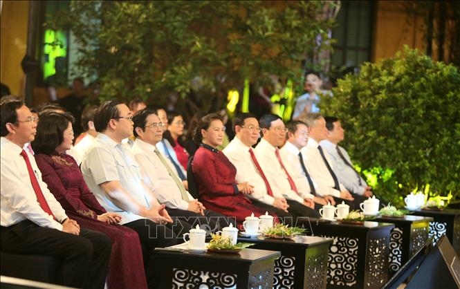 Chủ tịch Quốc hội Nguyễn Thị Kim Ngân và các đồng chí lãnh đạo Đảng, Nhà nước dự Cầu truyền hình tại Hà Nội - Ảnh Doãn Tấn/TTXVN