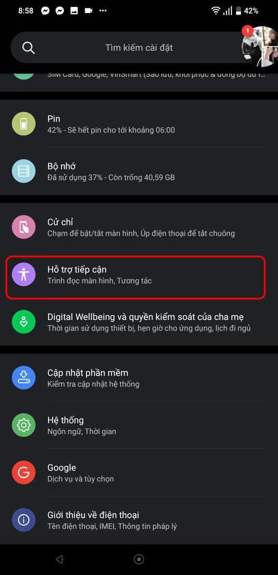 Tiếp theo vào phần Hỗ trợ tiếp cận
