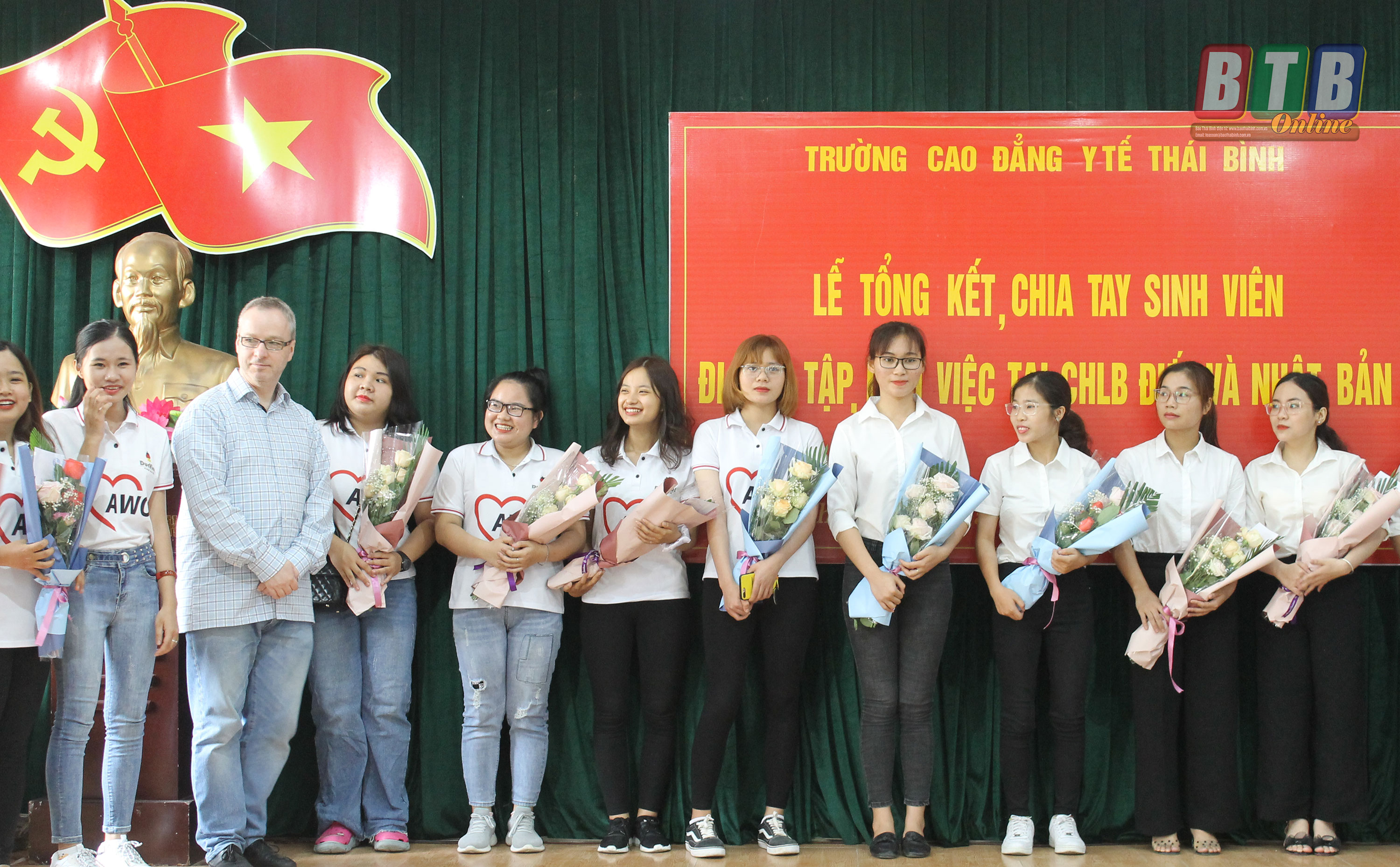 Tại buổi lễ, lãnh đạo Sở Lao động, Thương binh và Xã hội; Trường Cao đẳng Y tế Thái Bình và đại diện các tổ chức nước ngoài liên kết với Trường đã tặng hoa chúc mừng, động viên các sinh viên trước khi lên đường đi học tập, làm việc tại CHLB Đức và Nhật Bản.