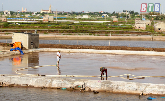 Nông dân huyện Tiền Hải tập trung cải tạo ao đầm nuôi thủy sản.