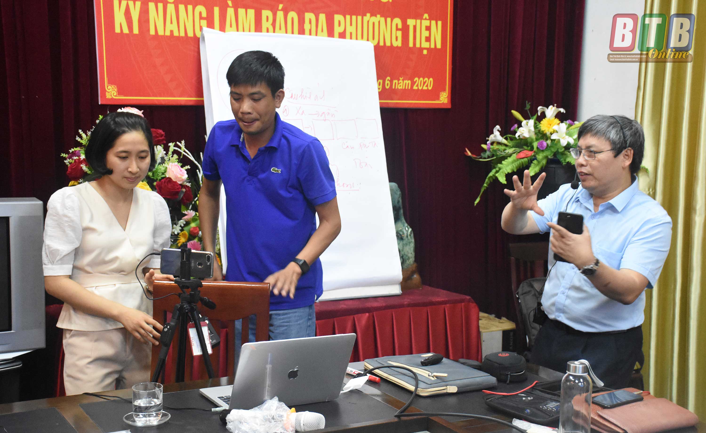 Phóng viên Báo Thái Bình tác nghiệp trong khuôn khổ lớp bồi dưỡng về kỹ năng làm báo đa phương tiện.