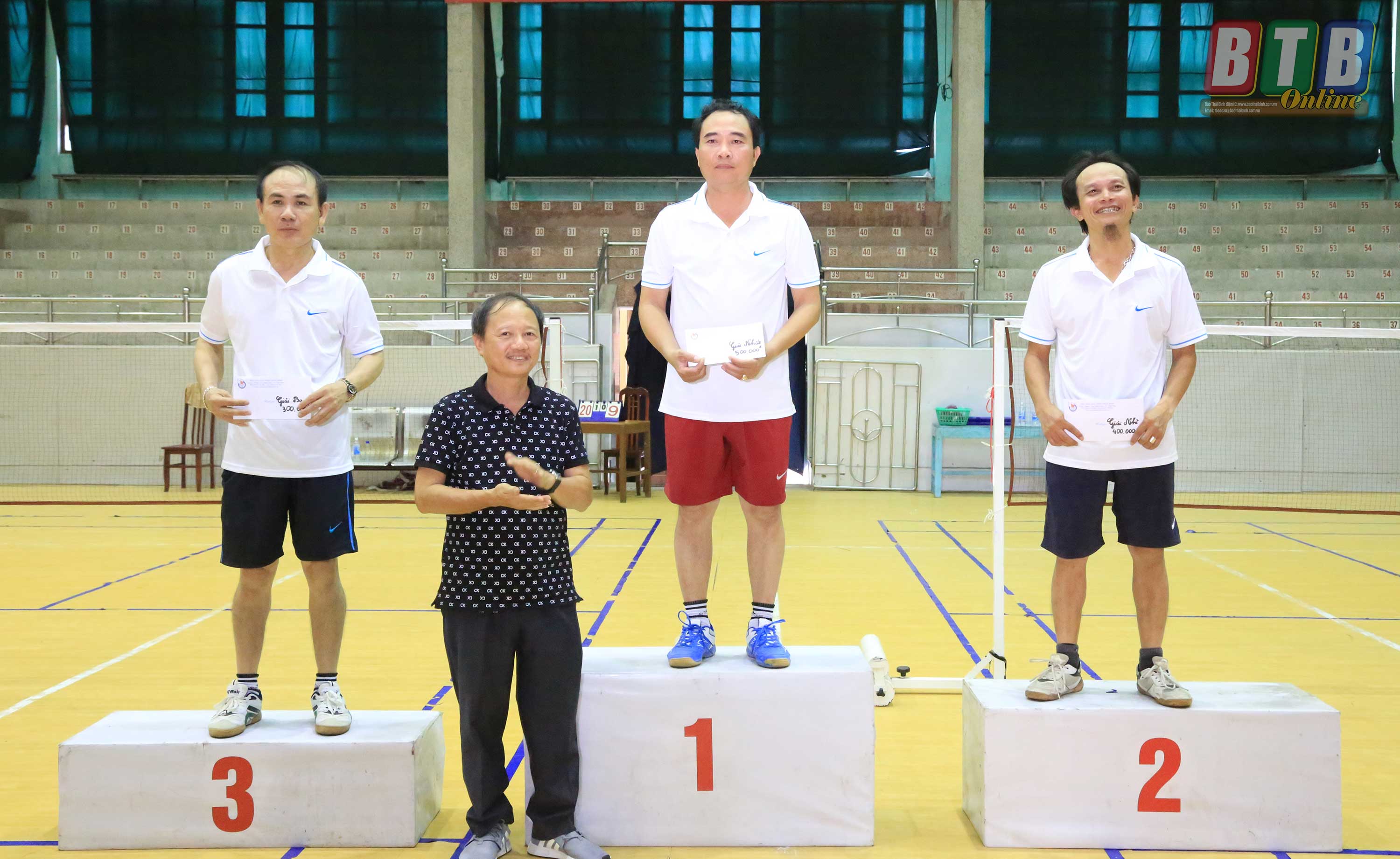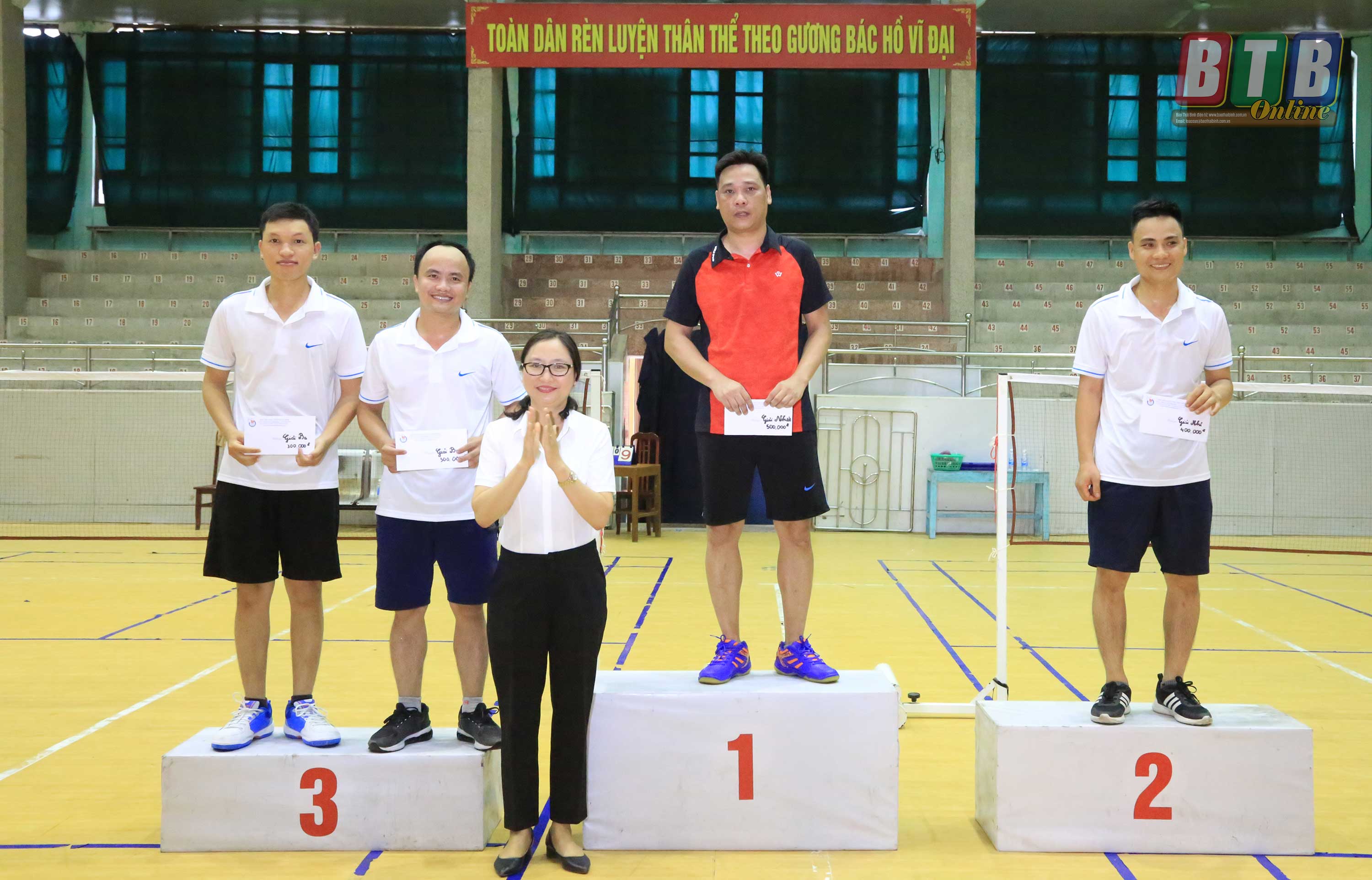 Sau nửa ngày thi đấu sôi nổi, Ban tổ chức đã trao giải nhất cho các cặp vận động viên: Huy - Quân (Đài Phát thanh – Truyền hình Thái Bình), Hùng - Trung (Báo Thái Bình), Huyền - Hà (Đài Phát thanh – Truyền hình Thái Bình).