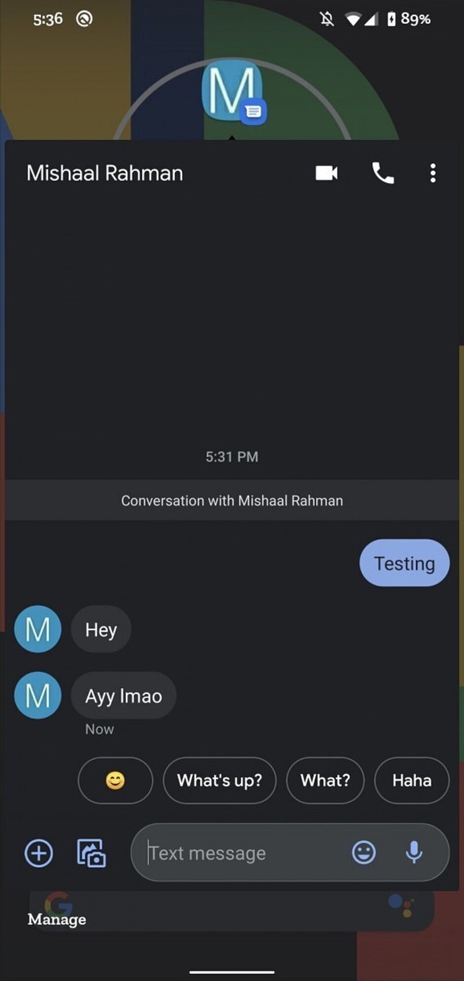 Là một tính năng mới chỉ có trên Android 11 nhưng Bubble thực chất tương tự như Chat Head trên Facebook Messenger phiên bản dành cho Android. Nhờ đó, khi người dùng đang dở một tác vụ toàn màn hình nào đó mà không thể hoặc không muốn bị gián đoạn khi có thông báo tin nhắn, Bubble sẽ là giải pháp phù hợp để vừa phản hồi thông tin đến vừa không để lỡ những gì đang xem.