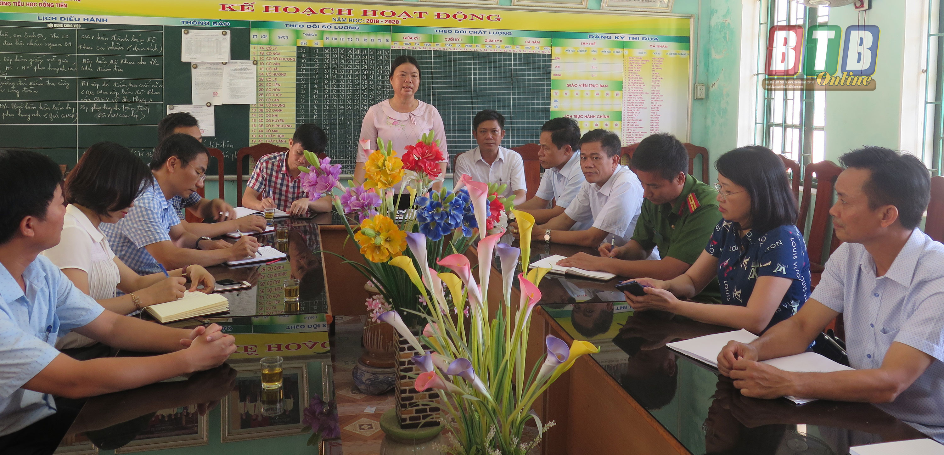 Lãnh đạo nhà trường báo cáo tại buổi kiểm tra.