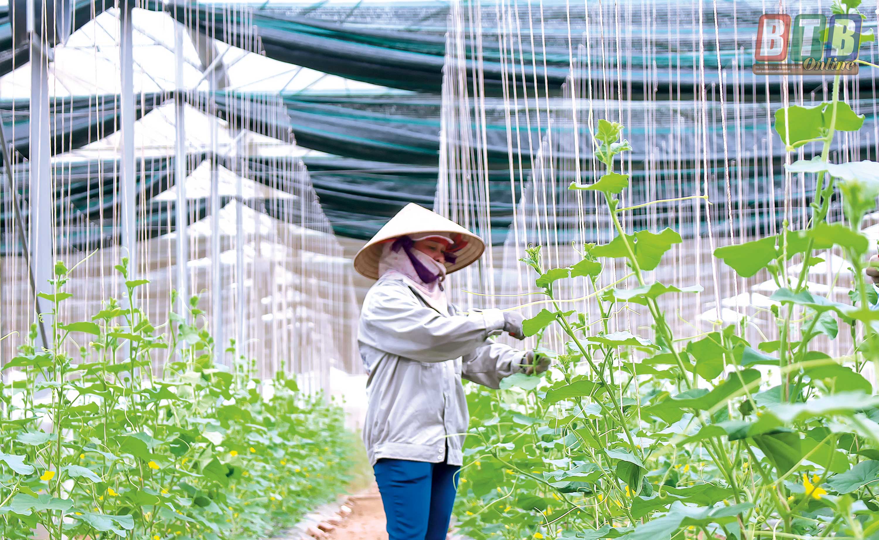 Mô hình trồng dưa trong nhà kính tại Công ty Cổ phần Thương mại tổng hợp Toan Vân (thành phố Thái Bình).