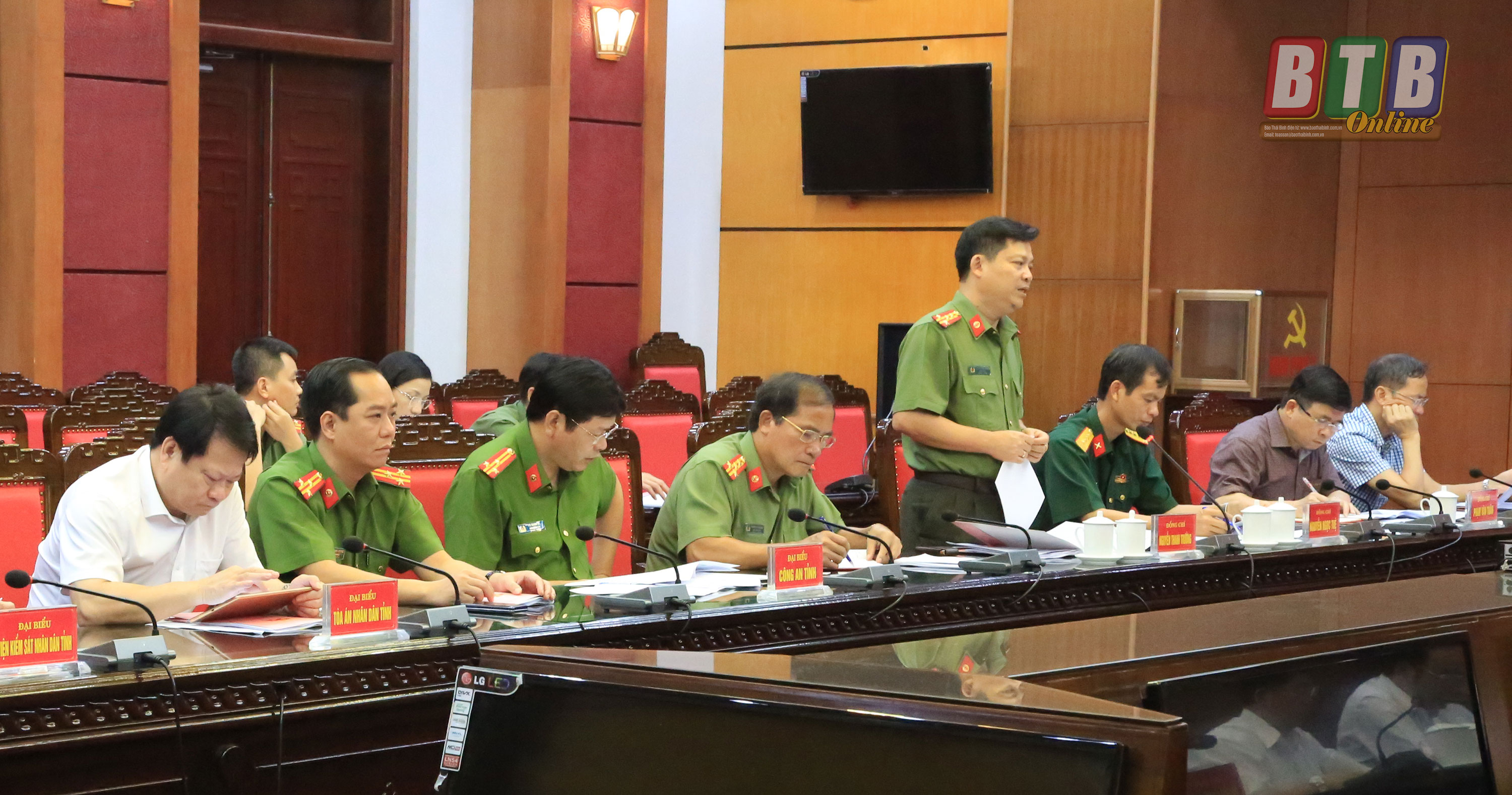 Lãnh đạo Công an tỉnh báo cáo tại hội nghị. Ảnh: Thành Tâm