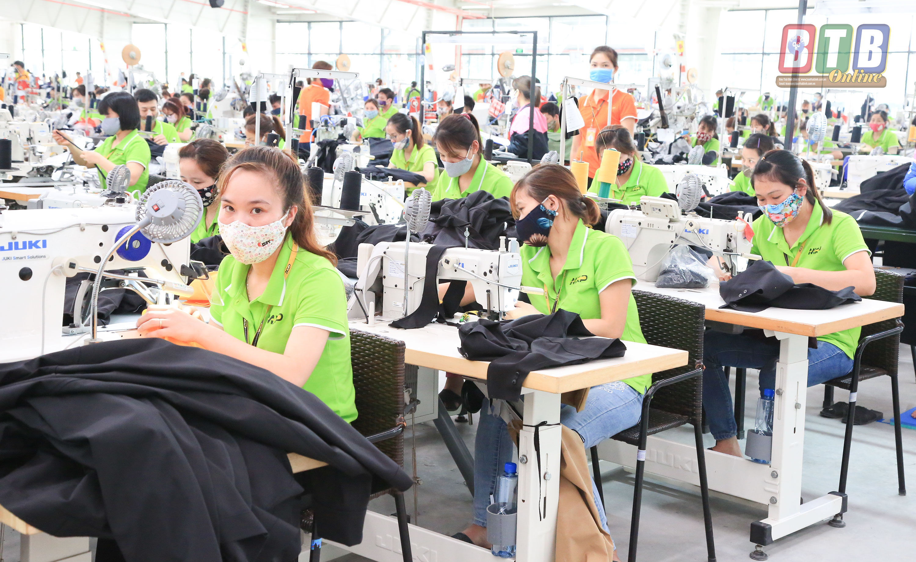 Mặc dù bị ảnh hưởng của dịch Covid-19 nhưng Công ty Cổ phần Sản xuất hàng thể thao MXP vẫn duy trì đủ việc làm cho công nhân với 8 giờ/ngày. Ảnh: Thành Tâm