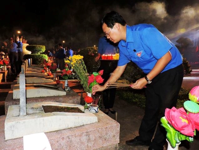 Đoàn viên, thanh niên tham gia thắp nến tri ân tại các nghĩa trang liệt sỹ - Ảnh: Minh Châu.