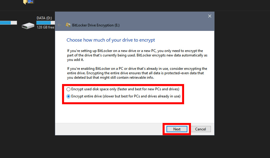 Encrypt entire drive: Mã hóa toàn bộ USB .