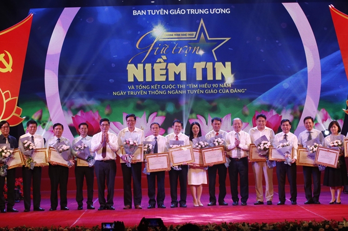 Phát biểu tổng kết tại Chương trình, đồng chí Lê Mạnh Hùng, Phó Trưởng Ban Tuyên giáo Trung ương cho biết, Ban Tuyên giáo Trung ương long trọng tổ chức Lễ Tổng kết và trao giải Cuộc thi “Tìm hiểu 90 năm Ngày truyền thống ngành Tuyên giáo của Đảng” trên mạng VCNET và Chương trình nghệ thuật “Giữ trọn niềm tin” vào dịp toàn ngành Tuyên giáo đẩy mạnh phong trào thi đua, thực hiện tốt nhiệm vụ và tổ chức nhiều hoạt động thiết thực chào mừng 90 năm Ngày truyền thống Ngành Tuyên giáo của Đảng.