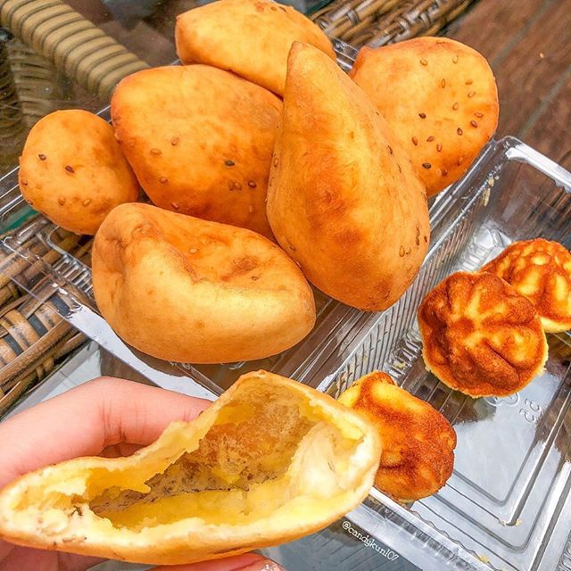 Bông lan trứng muối là món tráng miệng đổi vị cho chuỗi khám phá ẩm thực "ngập" trong hải sản của bạn. Vỏ bánh mềm, ngọt dịu, điểm nhấn là phần trứng muối mằn mặn, ngậy béo, kích thích vị giác. Những chiếc bánh ngọt ở Vũng Tàu có kích thước nhỏ gọn, ăn không quá ngấy.