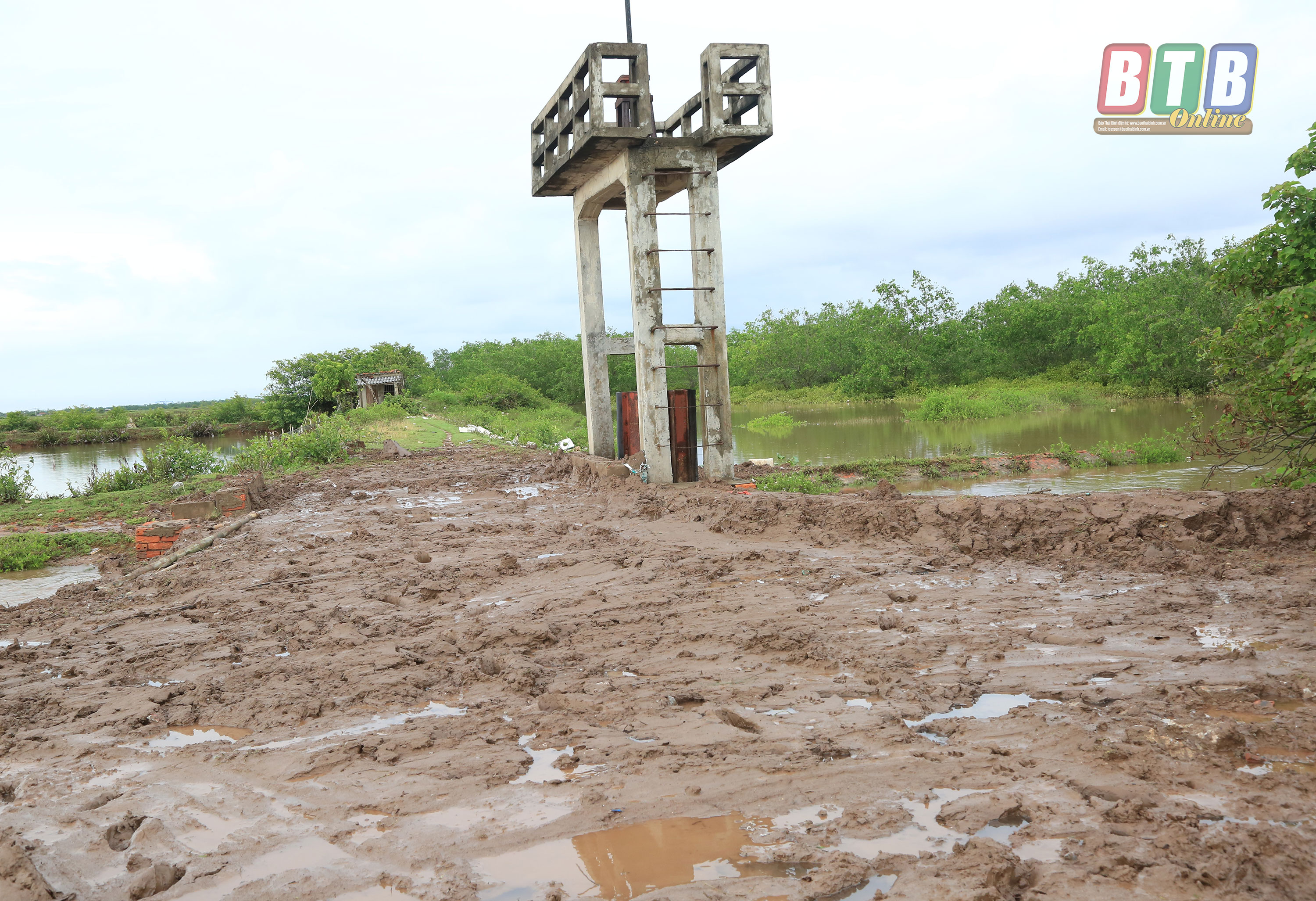 Theo báo cáo của lãnh đạo UBND xã Thái Thượng, khoảng 12 giờ trưa ngày 2/8, do mưa to, gió lớn kết hợp với triều cường dâng đã làm tràn 500m bờ đầm khu nuôi trồng thủy sản và sạt lở đất bên mang cống vùng đầm nuôi trồng thủy sản ngoài đê xã Thái Thượng.