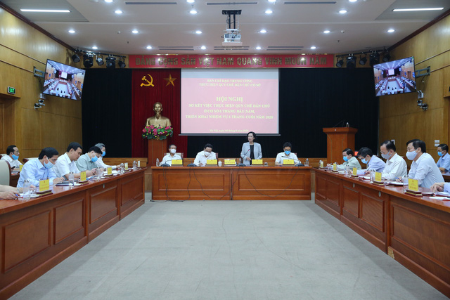 Ngày 5/8, tại Hà Nội, Ủy viên Bộ Chính trị, Bí thư Trung ương Đảng, Trưởng Ban Dân vận Trung ương Trương Thị Mai, Trưởng Ban Chỉ đạo Trung ương Thực hiện quy chế dân chủ cơ sở chủ trì Hội nghị sơ kết việc thực hiện quy chế dân chủ ở cơ sở 6 tháng đầu năm, triển khai nhiệm vụ 6 tháng cuối năm 2020.