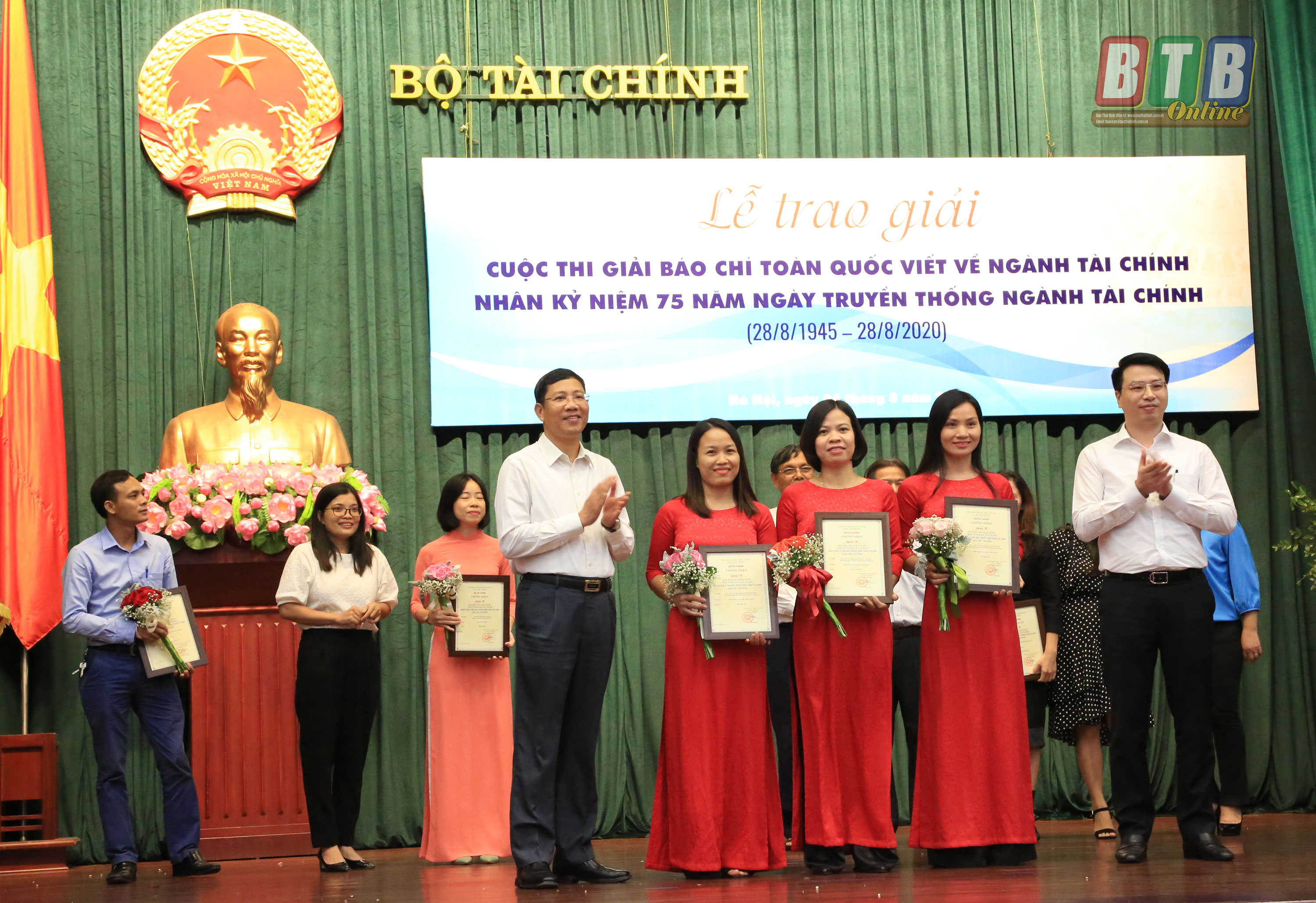 Ban tổ chức đã trao 1 giải đặc biệt, 5 giải A, 10 giải B, 20 giải C, 30 giải khuyến khích, 15 giải chuyên ngành và tặng bằng khen của Bộ trưởng Bộ Tài chính cho 10 cơ quan báo chí có thành tích tham gia tích cực giải báo chí toàn quốc viết về ngành Tài chính. Báo Thái Bình đạt giải B với tác phẩm “Xây dựng nông thôn mới ở Thái Bình - Điều hành ngân sách minh bạch, linh hoạt, hiệu quả” của nhóm tác giả Minh Nguyệt - Lưu Ngần - Thanh Huyền.