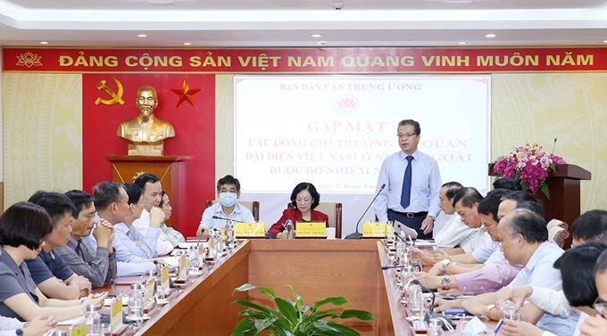 Tại cuộc làm việc, các Trưởng Cơ quan đại diện Việt Nam ở nước ngoài đã trao đổi về công tác dân vận tại các địa bàn; đồng thời thảo luận phương hướng tiếp tục tăng cường phong trào đoàn kết; nâng cao đóng góp trong hợp tác phát triển kinh tế để cùng xây dựng và hướng về đất nước./.