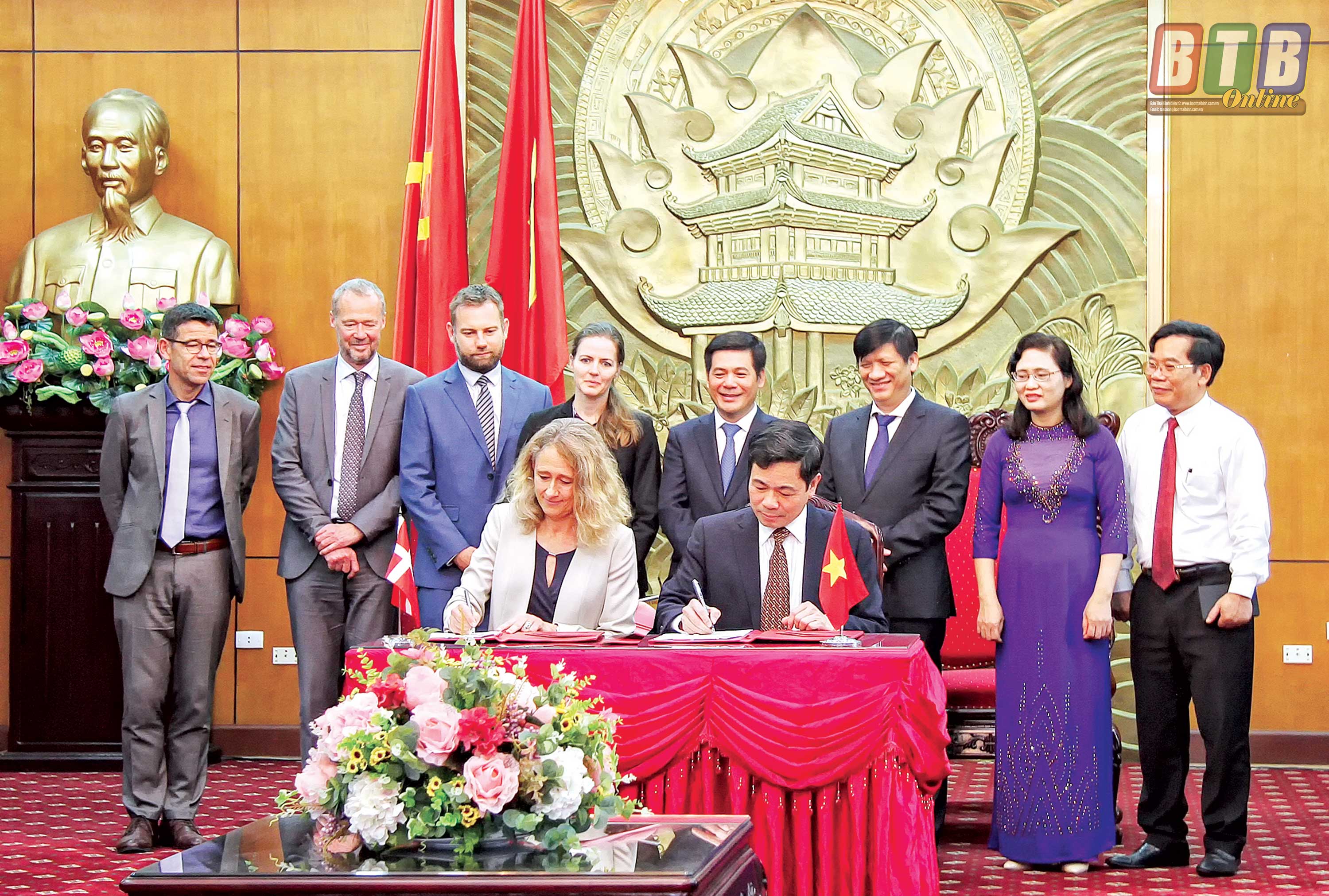 Các đồng chí lãnh đạo tỉnh chứng kiến lễ ký kết thỏa thuận hợp tác giữa Trường Đại học Y Dược Thái Bình với Trường Đại học Copenhagen (Đan Mạch).