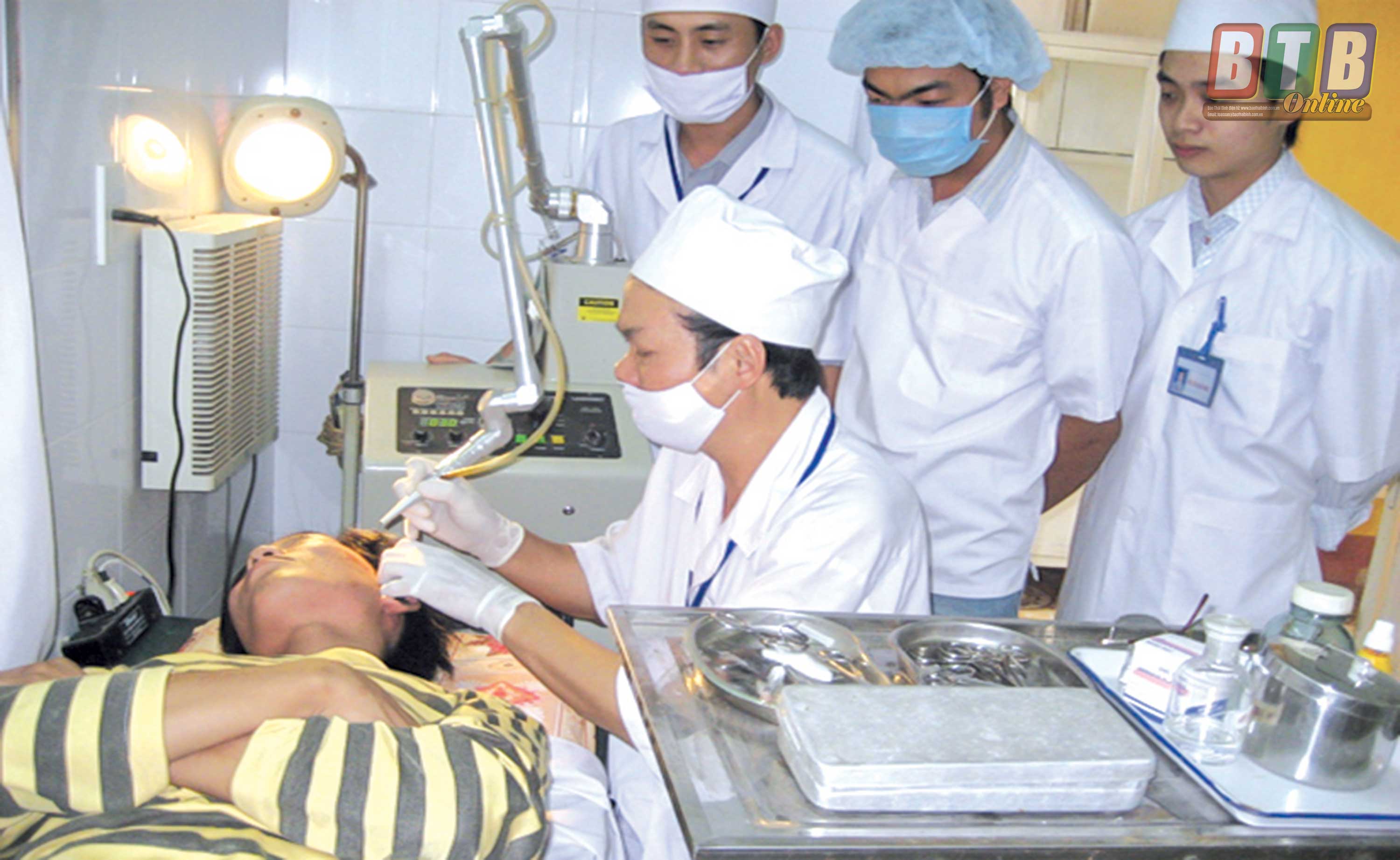 Giờ thực hành của sinh viên Trường Đại học Y Dược Thái Bình tại Khoa Tai mũi họng, Bệnh viện Trường Đại học Y Dược Thái Bình.