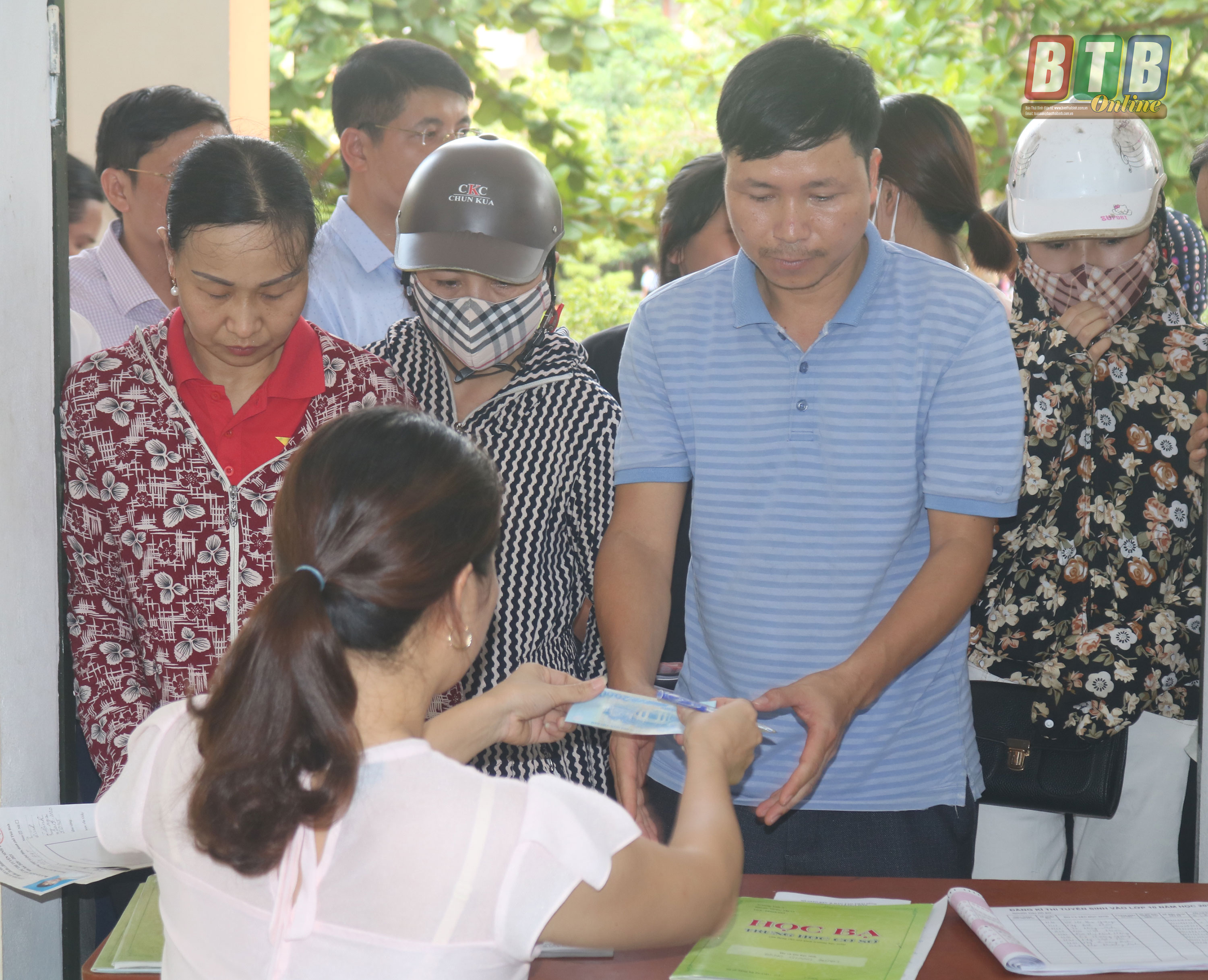 Cảnh nộp hồ sơ dự thi vào lớp 10 THPT tại Trường THPT Lê Quý Đôn.