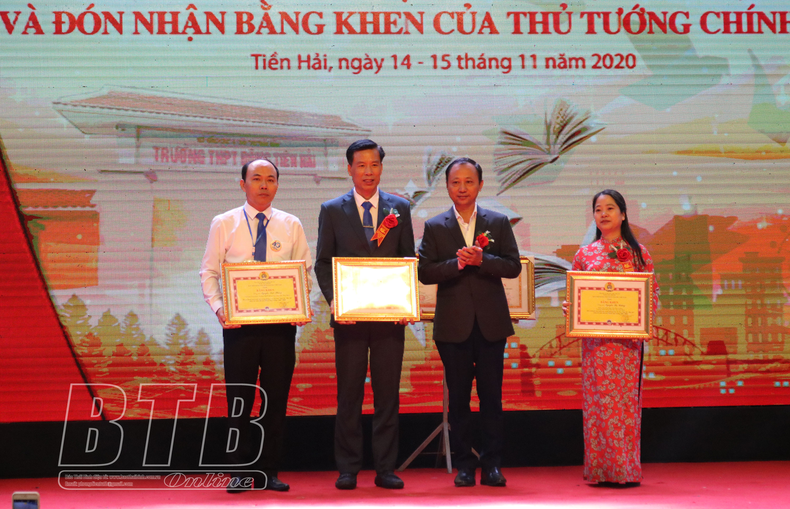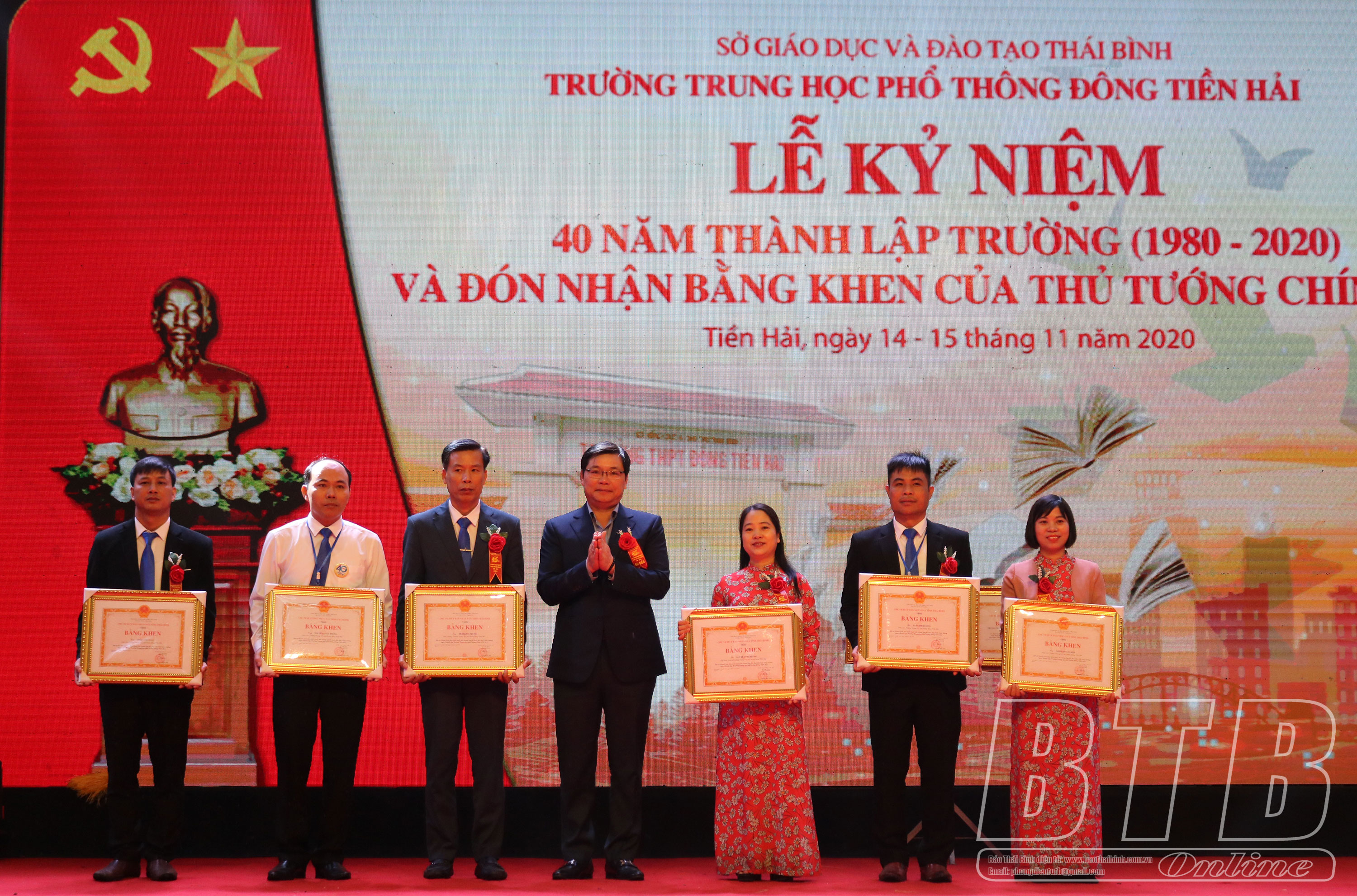 Thừa ủy quyền của Thủ tướng Chính phủ, đồng chí Nguyễn Quang Hưng, Uỷ viên Ban Thường vụ Tỉnh uỷ, Phó Chủ tịch thường trực UBND tỉnh trao bằng khen cho Trường THPT Đông Tiền Hải.