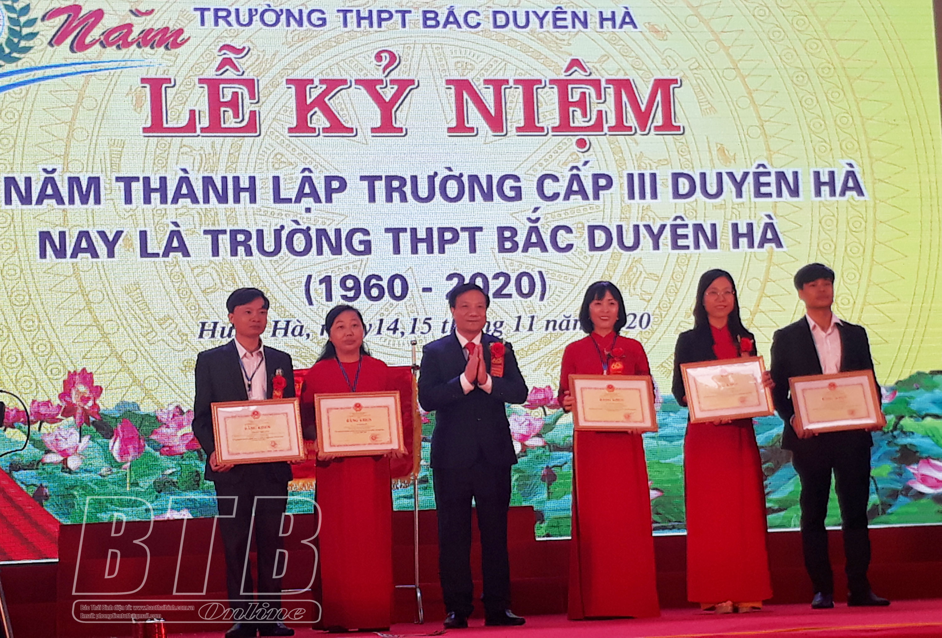 Phát biểu tại buổi lễ, đồng chí Nguyễn Tiến Thành, Phó Bí thư thường trực Tỉnh ủy, Chủ tịch HĐND tỉnh chúc mừng, ghi nhận và đánh giá cao kết quả mà tập thể thầy và trò Trường THPT Bắc Duyên Hà đạt được trong 60 năm qua. Đồng chí Phó Bí thư thường trực Tỉnh ủy mong muốn, trong thời gian tới, nhà trường tiếp tục quán triệt, thực hiện tốt các chủ trương, chính sách của Đảng, Nhà nước về đổi mới căn bản, toàn diện giáo dục - đào tạo. Chú trọng phát triển cả về giáo dục văn hóa, giáo dục thể chất và đạo đức, nhân cách. Nâng cao chất lượng đội ngũ thầy, cô giáo và cán bộ quản lý. Xây dựng đội ngũ giáo viên đạt chuẩn và trên chuẩn nghề nghiệp. Thực hiện đồng bộ các giải pháp đổi mới công tác quản lý, phát huy dân chủ theo phương châm “Dân chủ, kỷ cương, tình thương, trách nhiệm”. Đổi mới phương pháp giáo dục theo hướng dạy học kết hợp trực tiếp và trực tuyến. Mỗi thầy, cô giáo cần phát huy tinh thần trách nhiệm, tự rèn luyện, học tập nâng cao trình độ, đổi mới phương pháp giảng dạy đáp ứng yêu cầu của sự nghiệp trồng người, góp phần hoàn thành tốt hơn nữa các nhiệm vụ được giao và tiếp tục đạt được những thành quả quan trọng trong những năm tiếp theo.
