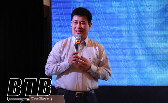 Tiến sĩ Sái Công Hồng, Phó Vụ trưởng Vụ Giáo dục Trung học, Bộ Giáo dục và Đào tạo truyền đạt các nội dung cơ bản của hội nghị tập huấn.