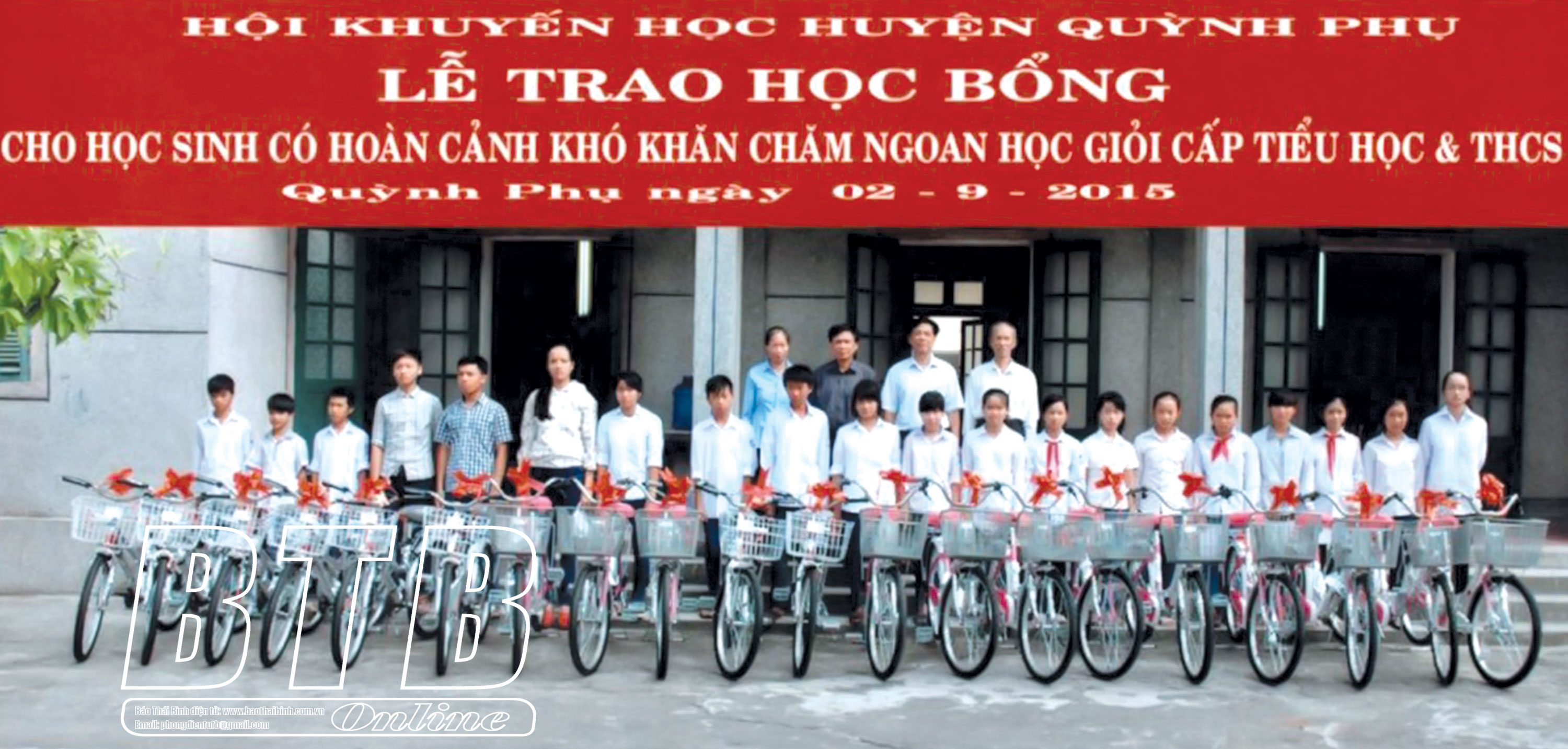 Hội Khuyến học huyện Quỳnh Phụ trao học bổng cho học sinh có hoàn cảnh khó khăn chăm ngoan học giỏi cấp tiểu học và THCS.