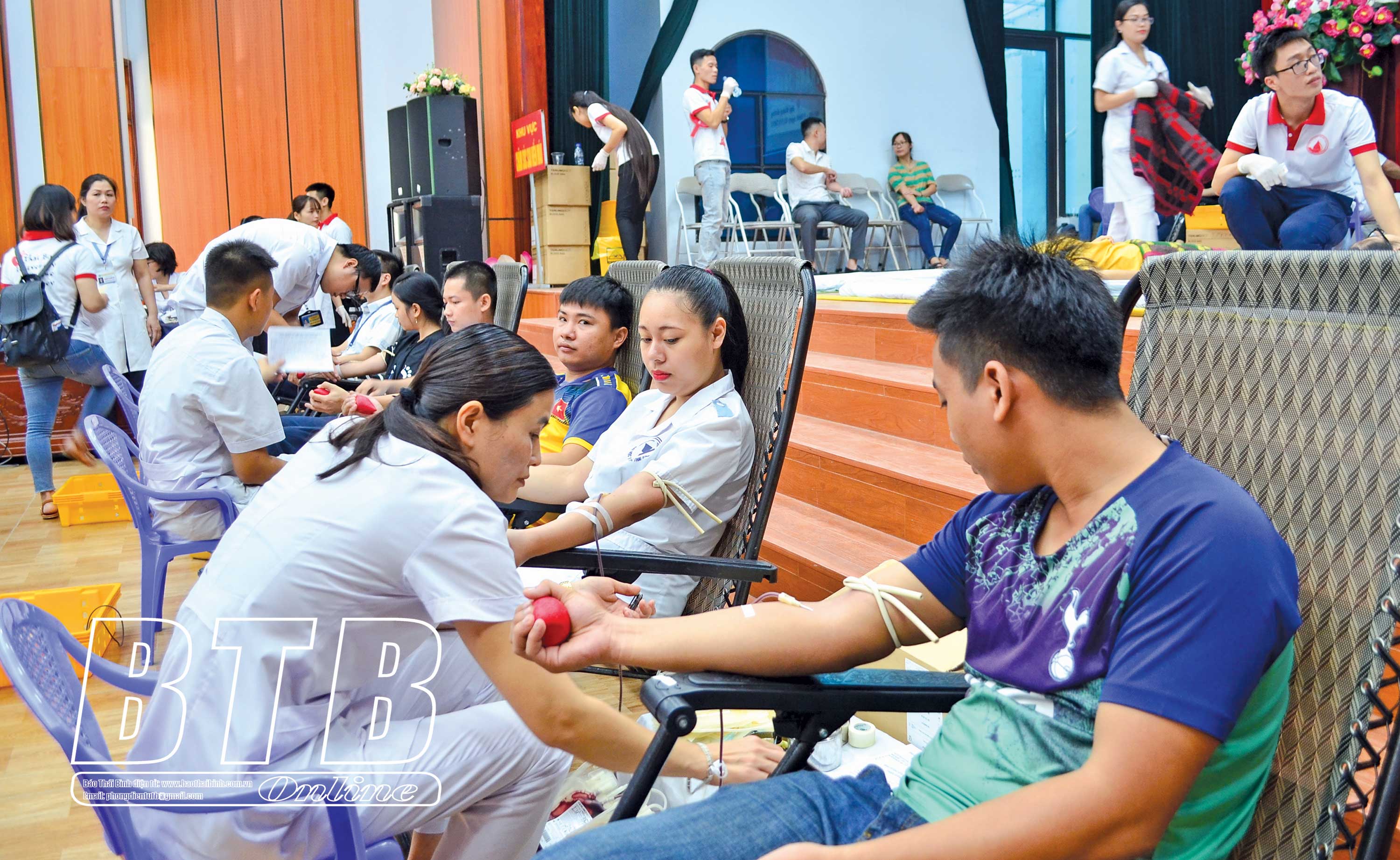 Sinh viên Trường Đại học Y Dược Thái Bình hiến máu tình nguyện.