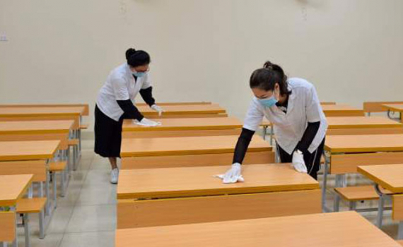 Các trường học thường xuyên làm vệ sinh, khử khuẩn để phòng, chống dịch Covid-19. Ảnh minh họa.