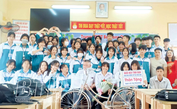 Từ số tiền thu được từ quỹ nuôi heo tình bạn, Đoàn Trường THPT Bắc Đông Quan (Đông Hưng) đã trao tặng em Võ Thị Phượng, học sinh của trường một chiếc xe đạp. Ảnh tư liệu