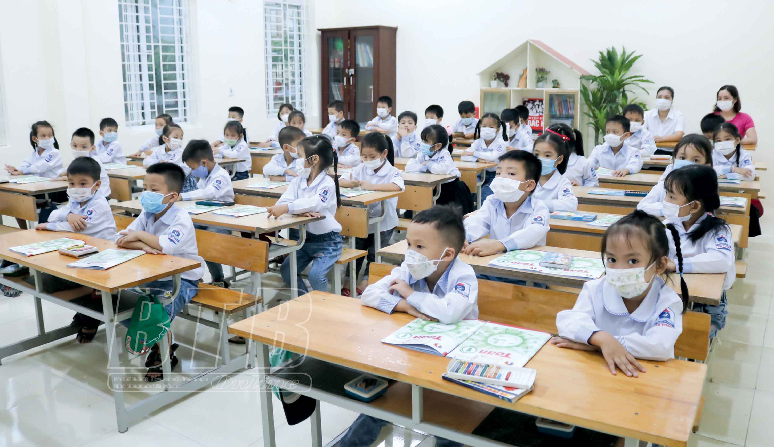 Các phòng học Trường Tiểu học và THCS An Thanh (Quỳnh Phụ) được lắp đặt thiết bị và đồ dùng học tập mới phục vụ việc dạy và học.