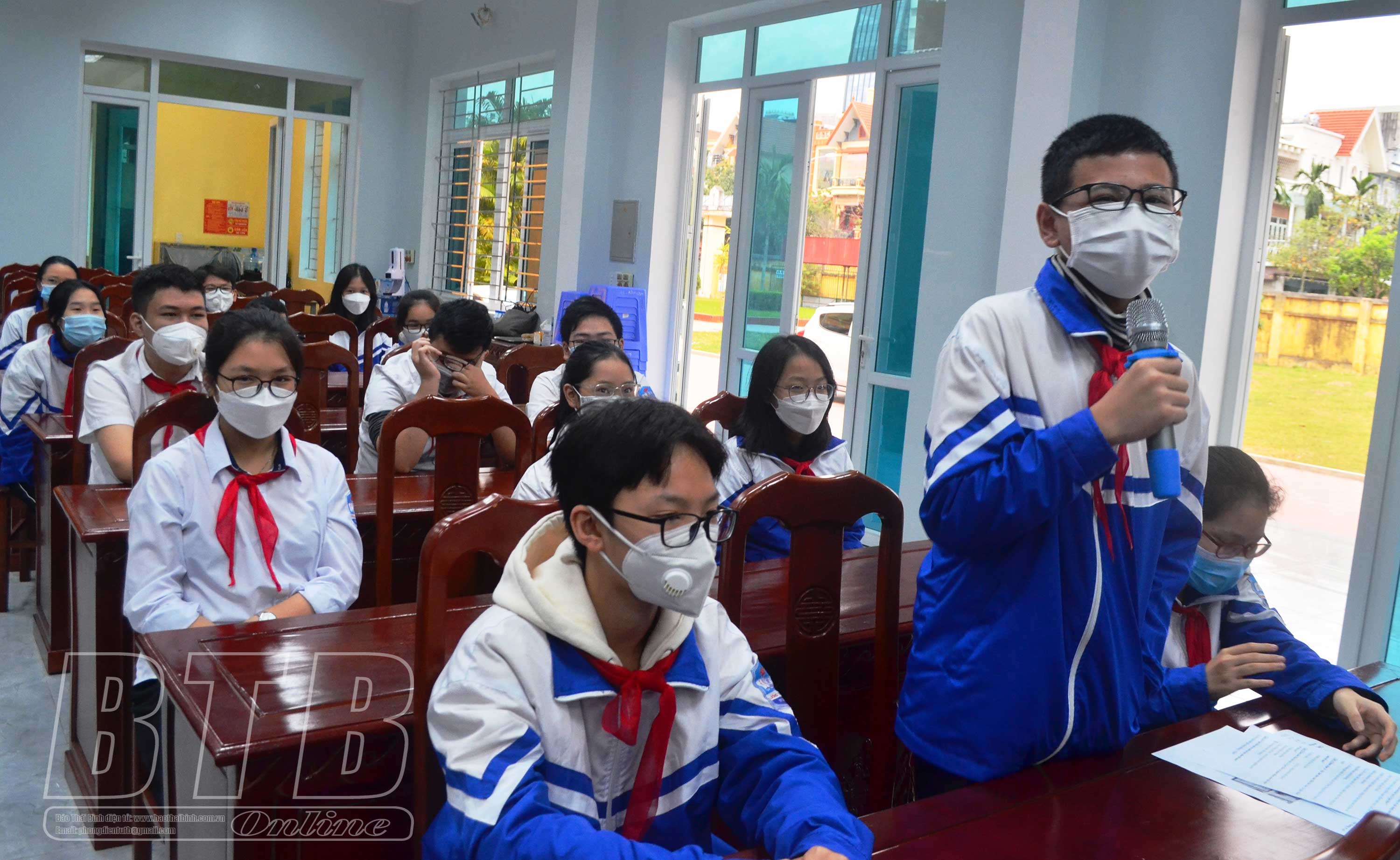 Học sinh Trường THCS Lương Thế Vinh đặt câu hỏi cho nhóm thực hiện dự án.