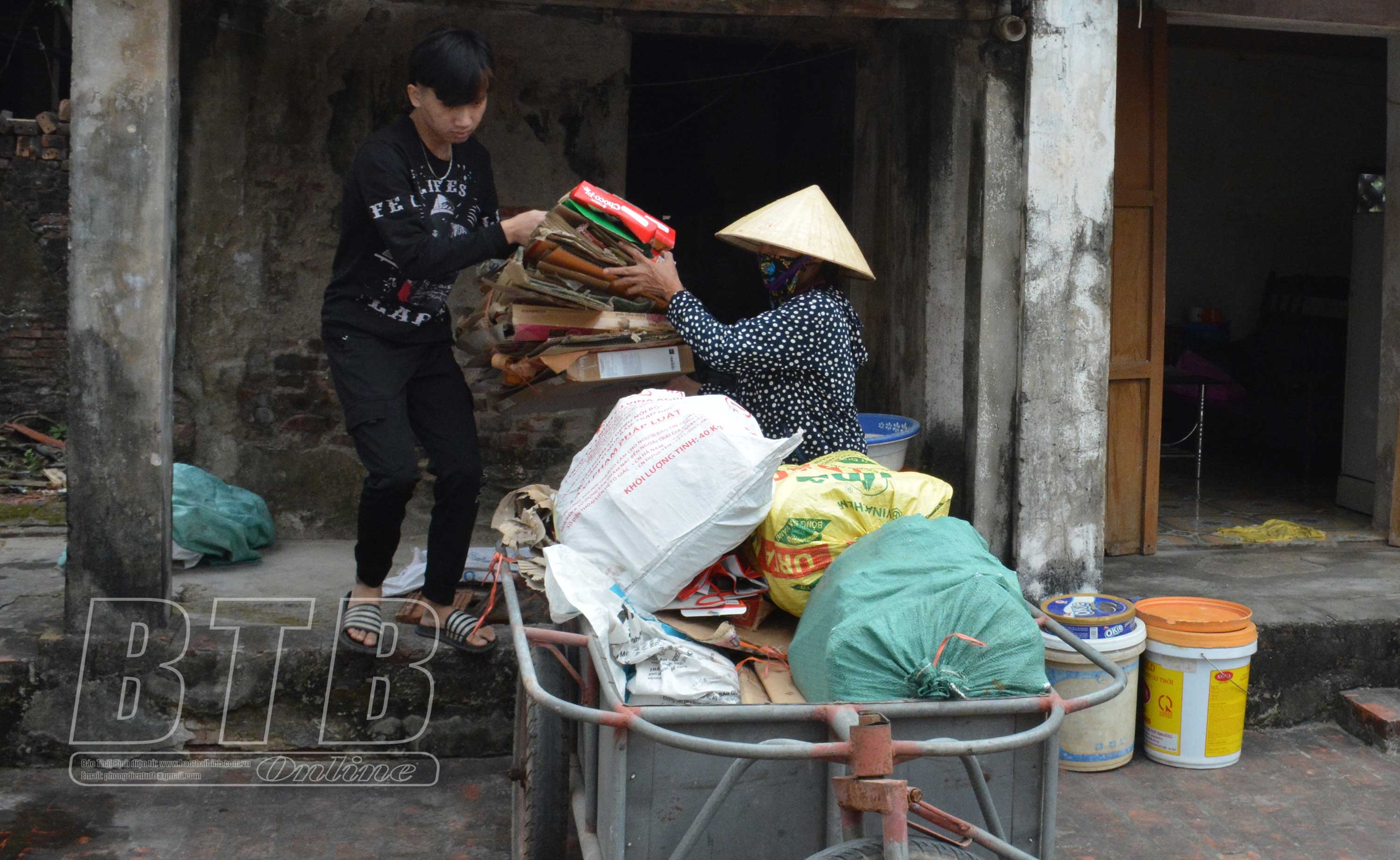 Bà Bùi Thị Ruyến, mẹ em Duy cho biết: Tôi ốm đau suốt. Trước thì tôi cấy mấy sào ruộng, gần đây sức khỏe yếu hơn nên tôi đi thu mua ve chai, ngày cũng được 20 – 30.000 đồng. Nếu mưa gió thì không được đồng nào. Nhà thì đang ở nhờ, cũng dột nát rồi, mưa là phải chạy đi trú nhờ.