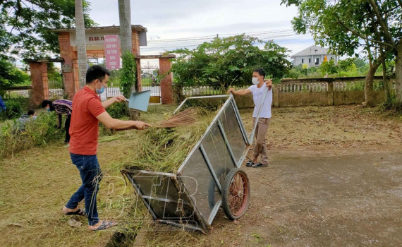 Giáo viên Trường Tiểu học và THCS Hồng Lý (Vũ Thư) vệ sinh khuôn viên trường học. Ảnh tư liệu