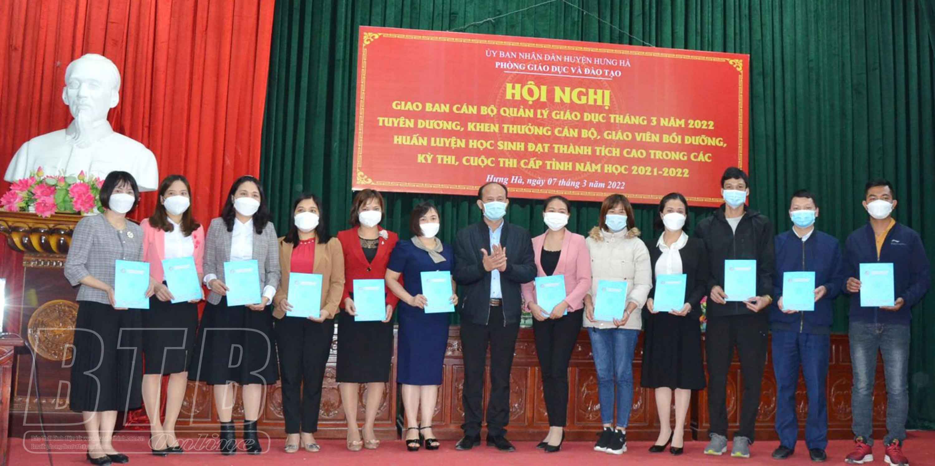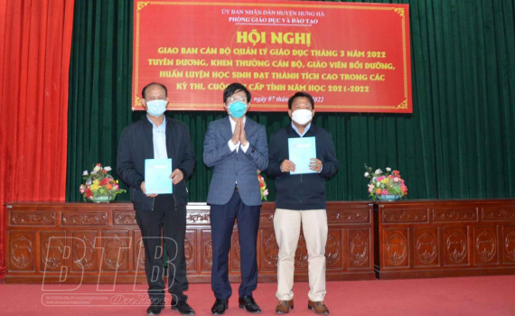 Nhân dịp này, Phòng Giáo dục và Đào tạo huyện Hưng Hà đã tuyên dương, khen thưởng 23 cán bộ, giáo viên đạt thành tích xuất sắc trong công tác bồi dưỡng, huấn luyện học sinh tham gia cuộc thi chọn học sinh giỏi lớp 9, cuộc thi Khoa học kỹ thuật cấp tỉnh khối học sinh trung học và giải thi đấu thể thao cấp tỉnh năm học 2021 – 2022.