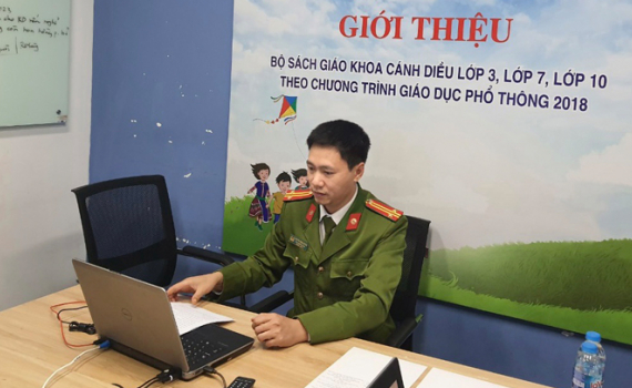 Tác giả giới thiệu sách giáo dục quốc phòng và an ninh 10 cho giáo viên phổ thông của các địa phương theo hình thức trực tuyến.