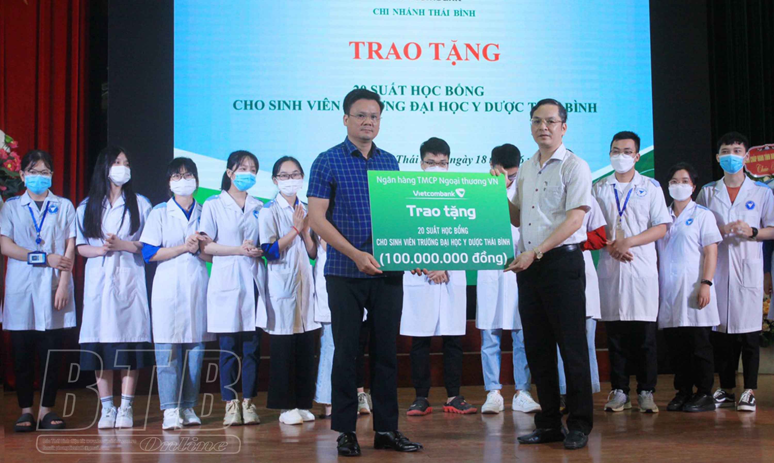 Ngân hàng TMCP Ngoại thương Việt Nam Chi nhánh Thái Bình đã trao 20 suất học bổng trị giá 100 triệu đồng cho Trường Đại học Y Dược Thái Bình.